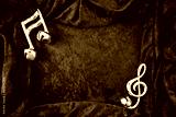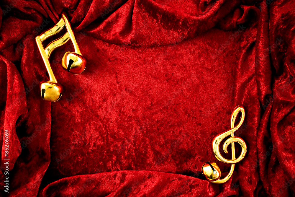 Christmas Musical Notes & Red Velvet Background with copy space.