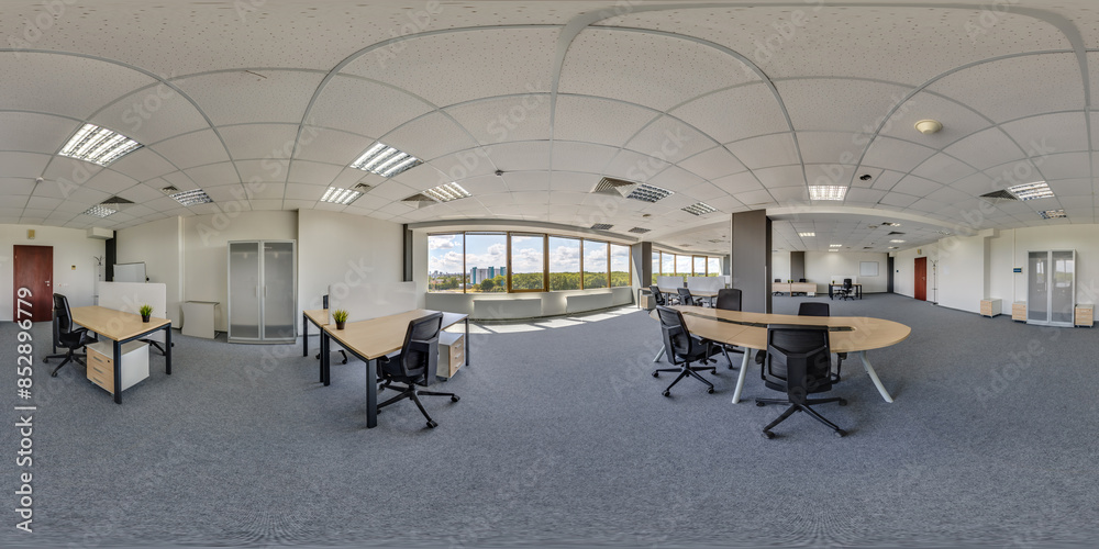 full spherical hdri seamless hdri 360 panorama in interior of work room in modern coworking office empty hall for business meeting in equirectangular projection. AR VR content