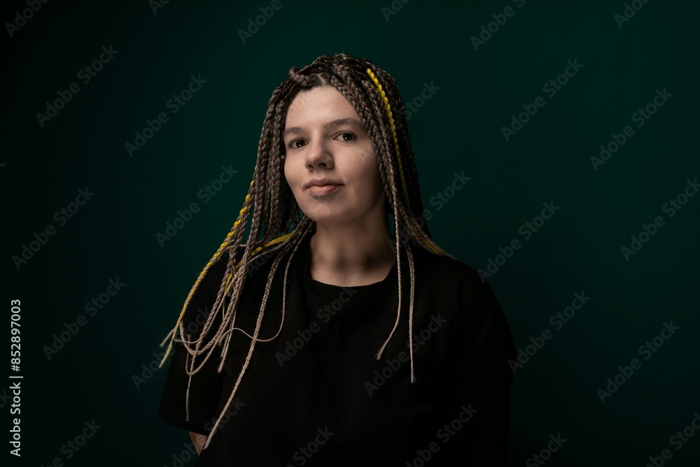 Woman With Dreadlocks Standing in Front of Green Background