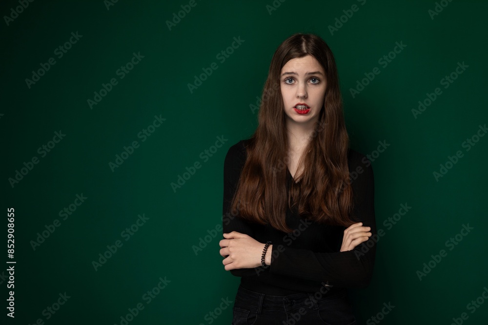 Woman With Arms Crossed Against Green Background