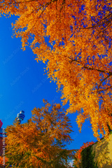 秋空と紅葉