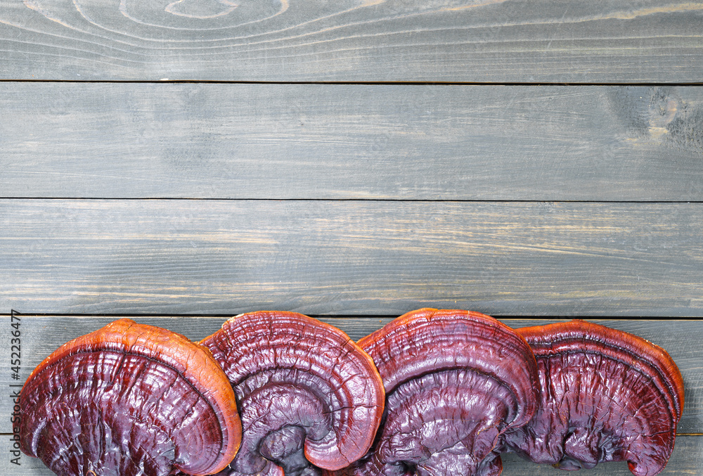 Three large lollipops on a stick in the shape of a circle, a flower and a heart surrounded by red and yellow candies on a purple background, handmade