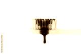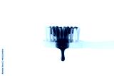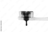 Swatch of whitening purple toothpaste on a toothbrush isolated on transparent background. Texture of purple tooth gel for whitening teeth.