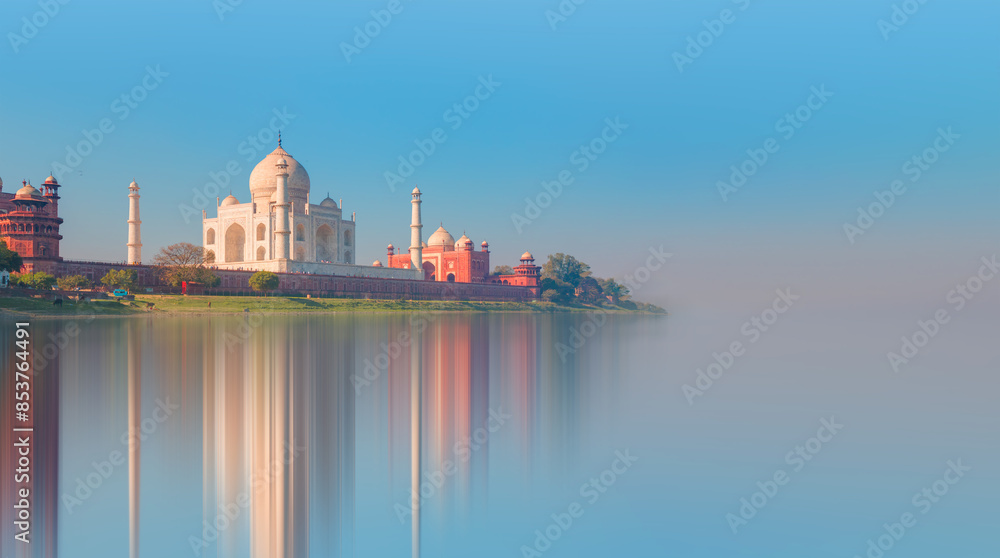 Taj Mahal mausoleum reflected in Yamuna river - Agra, Uttar Pradesh, India
