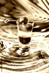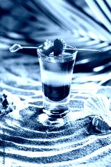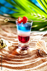 short cocktail on the sand white blue red strawberries