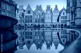 Old Town of Münster, reflection of gabled Houses at the so-called Prinzipalmarkt - Germany