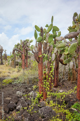 Galapagos Islands primeval landscape with Giant opuntia, Santa Cruz Island, Ecuador.