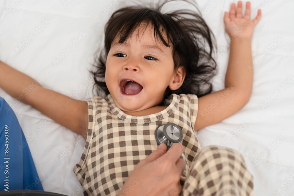 doctor using stethoscope to istening toddler's chest. baby health concept