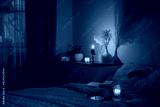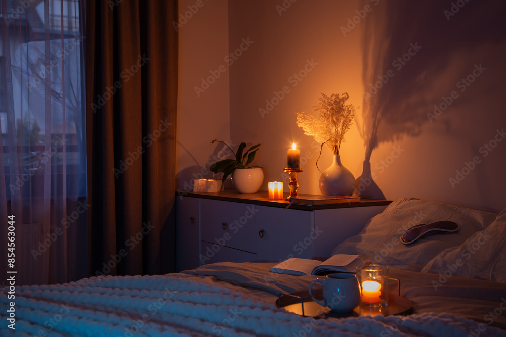 cup of tea in bedroom at night