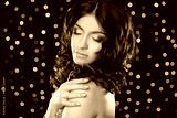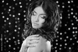Fashion brunette girl with Long curly hair, beauty makeup, luxur