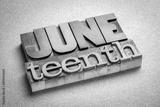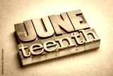 Juneteenth (June 19) also known as Freedom, Jubilee, Liberation, and Emancipation Day, a holiday celebrating the emancipation of those who had been enslaved in the US, wood type text