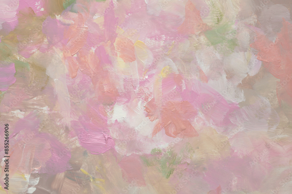 Art hand drawn watercolor and acrylic smear blot canvas painting. Abstract texture beige, pink pastel color stain brushstroke relief texture background.