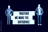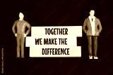 two miniature people and colored paper with the words TOGETHER WE MAKE THE DIFFERENCE
