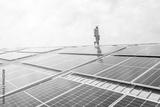 Professional Engineer Service Solar Panel. Worker Maintenance Cleaning Replacing Solar Panel. Solar photovoltaic panel system in Industry roof. Saving Energy with Clean Power.