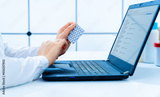 young woman doctor examines the compatibility of a medication with other medicinal substances