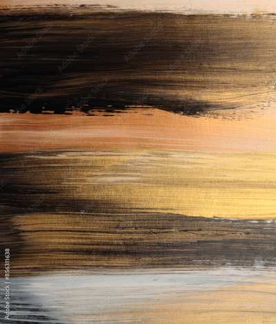 Art oil and acrylic smear line blot canvas painting wall. Abstract texture gold, bronze, black color stain brushstroke texture background.