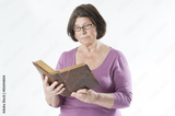 Elderly woman reading a book..
