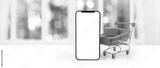 smartphone with shopping cart and a box