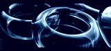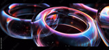 3D Render of Abstract Iridescent Glass Rings on Black Background, Minimalist Texture and Fashion Concept Art in High Resolution