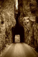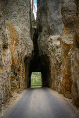 Needles Eye Tunnel, a tall granite spire shaped like the eye of a needle, on the Needles Highway in Custer State Park, Black Hills Country, South Dakota