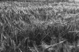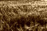 Grain field background. Ears of wheat in the wind at sunset close-up, selective focus.