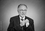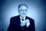 senior man pulling out a hidden ace card from suit jacket sleeve
