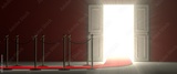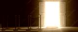 White open door - an easy way to success. Beyond the glorious door there is a white illuminated environment that projects its light in front of you.