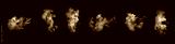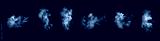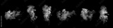 Collection of close-up shots of abstract white steam or smoke. White cloudiness from moisture spray Isolated on a black background.