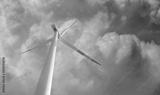 Wind turbines generating electricity with amazing stormy clouds