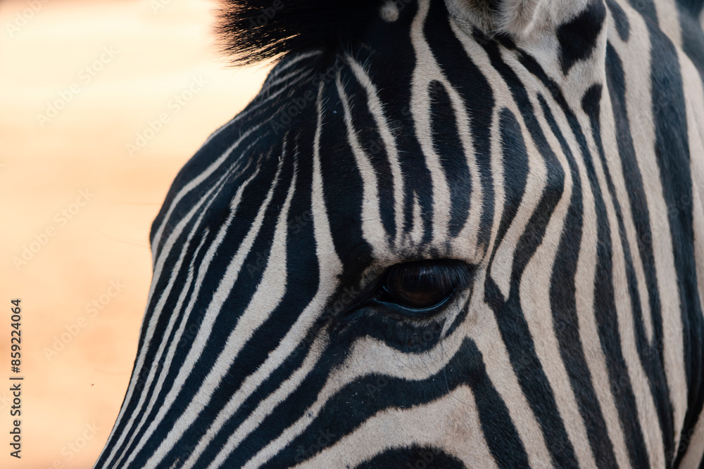 A wild African animal. Close-up of a mountain zebra on the grassland