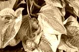 Garden snail moving slowly across a dewy hosta leaf in the Spring