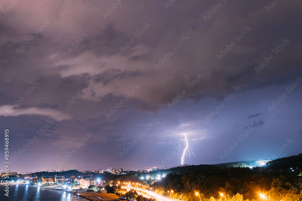 Night View On Hotels Mediterranean Coast Of Antalya And Alanya. Travel To Turkey. Popular Touristic Coastline. Turkish Riviera Or Turquoise Coast. Favorable Climate, Warm Sea, Mountainous