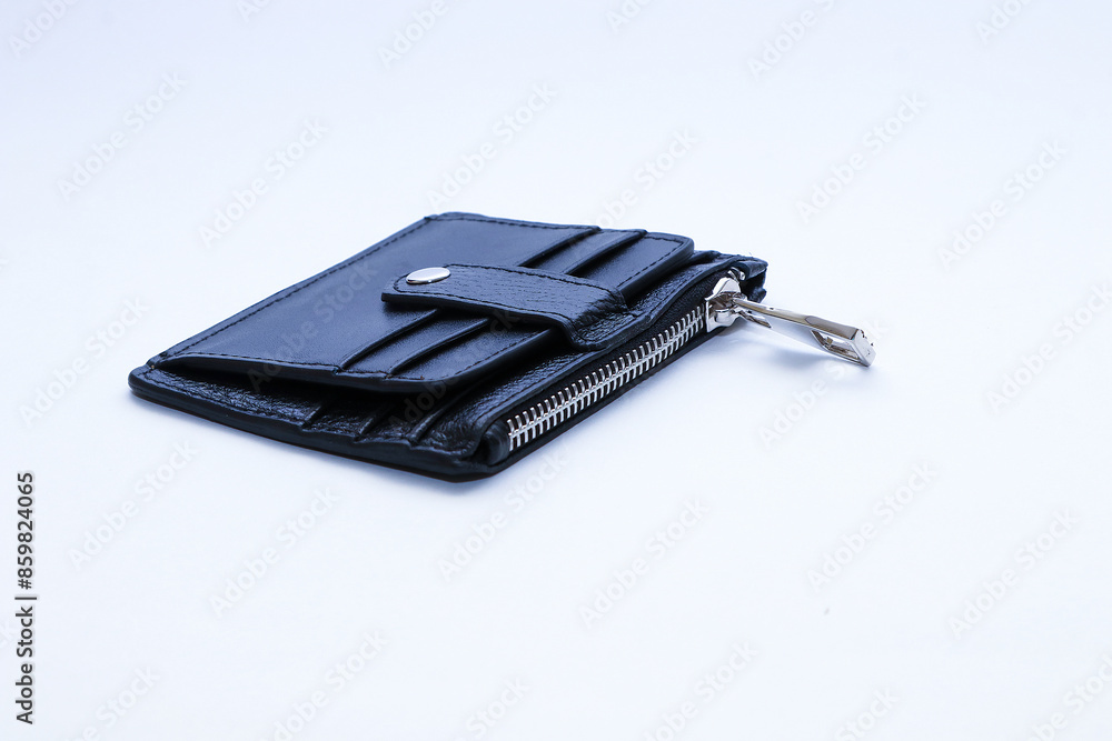Black leather wallet on white background