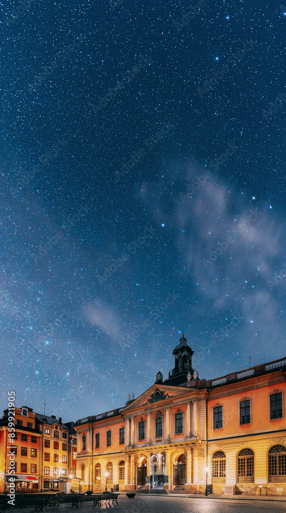 Stockholm, Sweden. Famous Old Swedish Academy and Nobel Museum In Old Square Stortorget In Gamla Stan. Famous Landmarks And Popular Place.