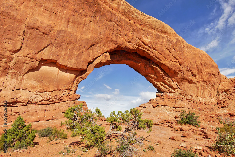 Rock arch gate in Utah USA, landscape of red rock and wild nature.