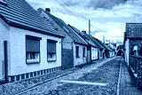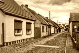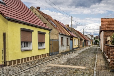 tangerhütte, deutschland - alte häuser in einer schmalen straße