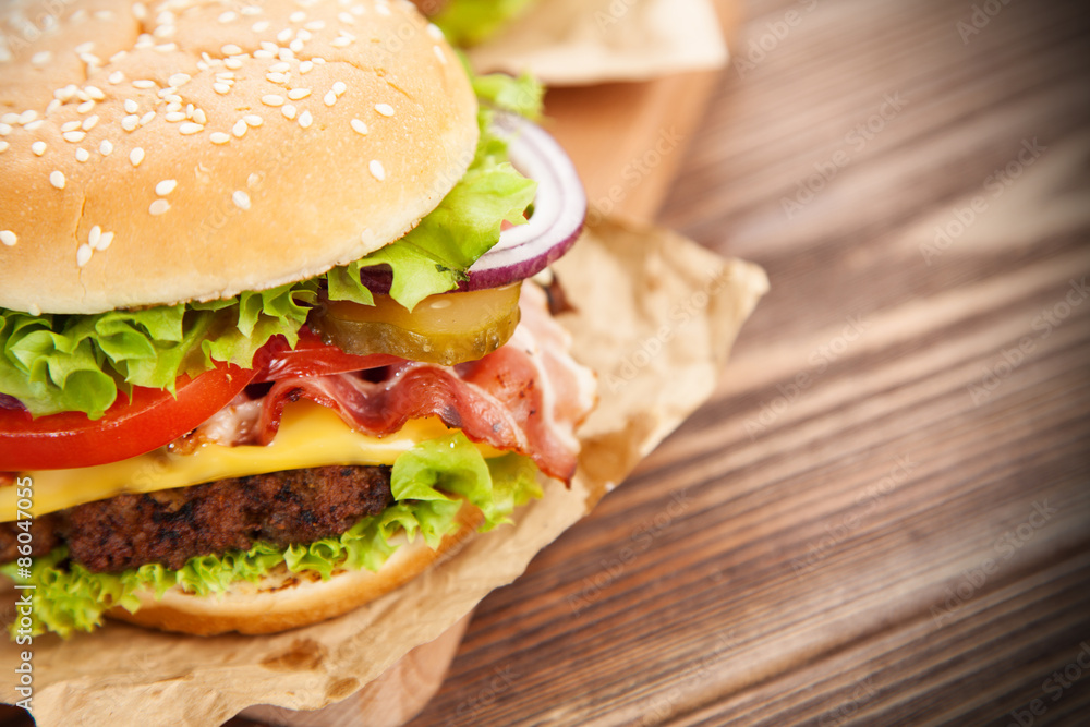 Delicious hamburger and fries