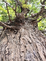 A tamarind tree that grows very fertile is brown and was taken in front of the house