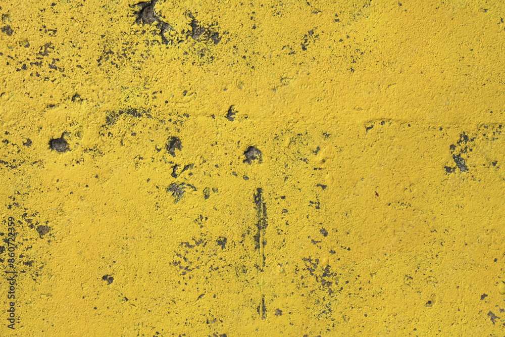 Yellow concrete wall, texture, background. Old textured wall, painted in yellow. Surface of concrete slab or supporting wall. Destroyed, chipped from age hydraulic concrete. Abstract, rough backdrop