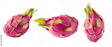 Set of dragon fruit isolated on white background. Pitaya fruit cut out for design.