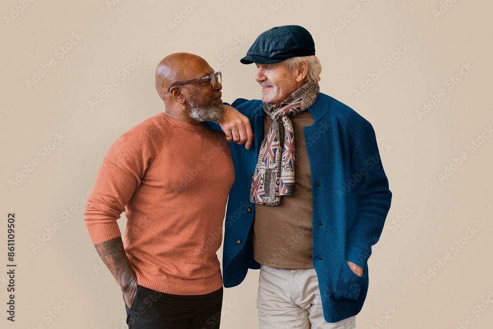 Senior gay couple, isolated on beige