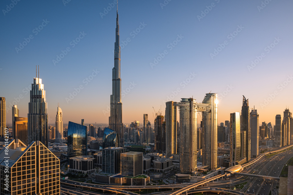Dubai sunset with views to the city centre from a skyscraper