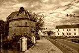 tangerhütte, deutschland - bahnübergang mit historischen trafohäuschen