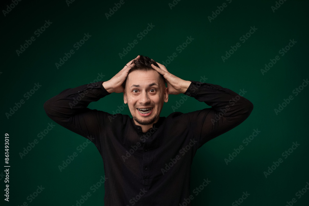 Man Holding Hands on Head