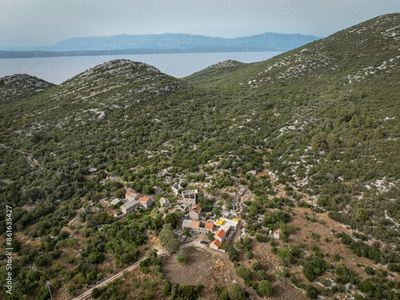 Aerial view of deserted village Nakovanj on Pelješac, Dalmatia, Croatia