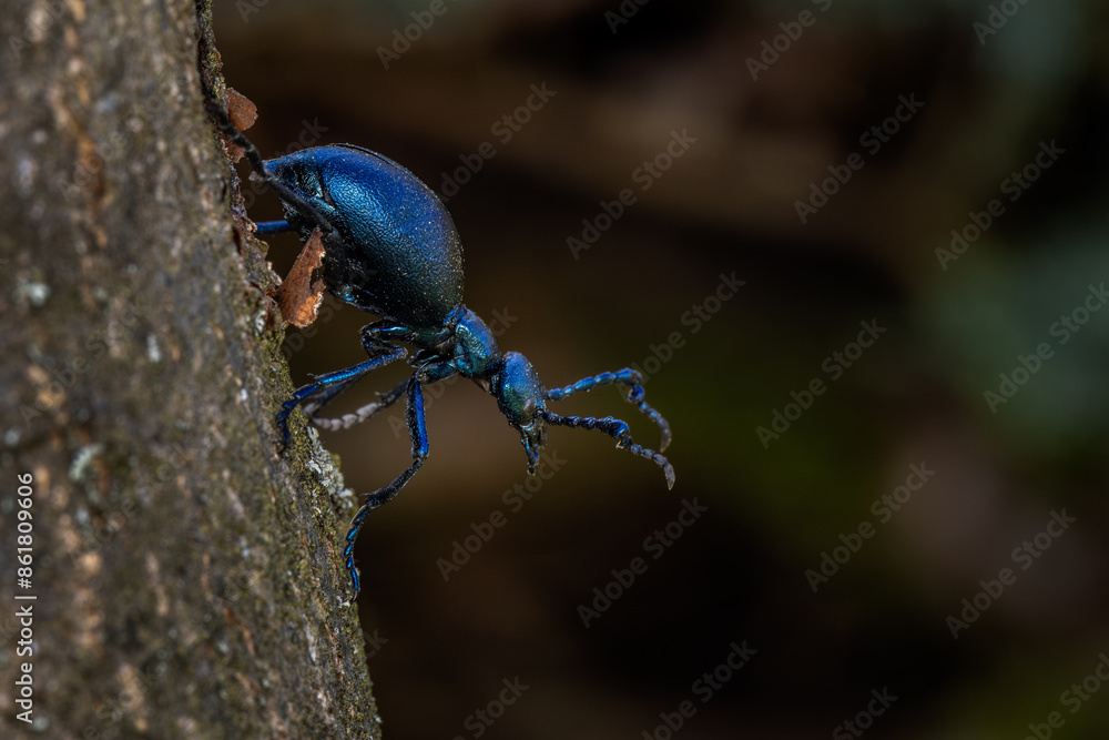Violet Oil-beetle - Meloe violaceus, beautiful poisoneous blister beetle from European meadows and grasslands, Zlin, Czech Republic.