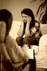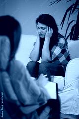 Depressed girl at psychologist's office
