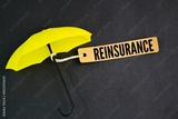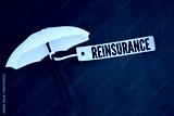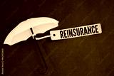 yellow umbrella and paper tag with the word REINSURANCE. insurance reform concept