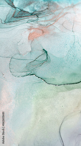 Abstract Ink Swirls in Aqua and Rose