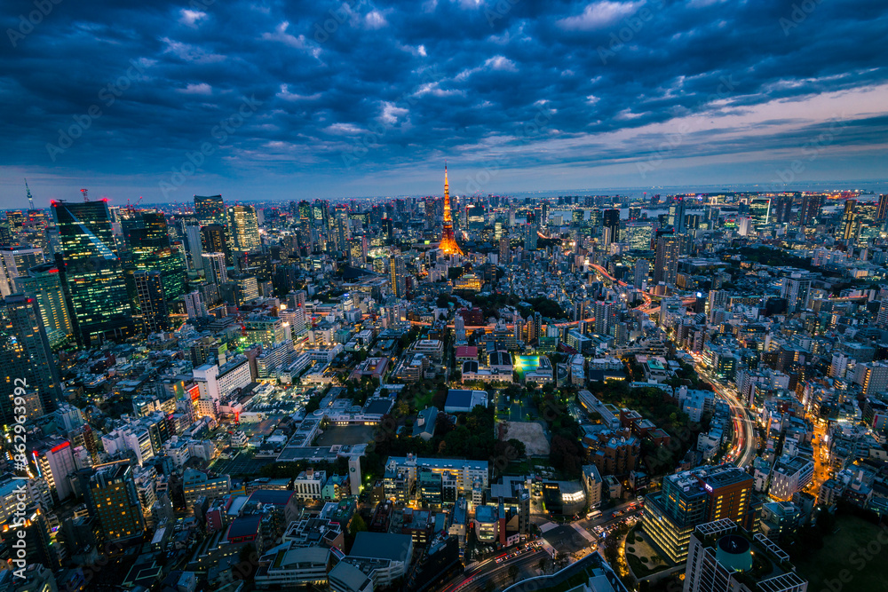 Sunset over the city of Tokyo